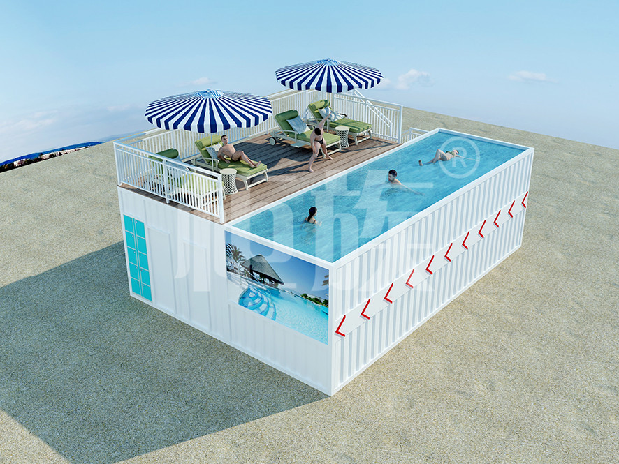 The container swimming pool can be completely prefabricated in the factory, with small area and low cost. It is suitable for courtyard, seaside resort and other public amusement park.