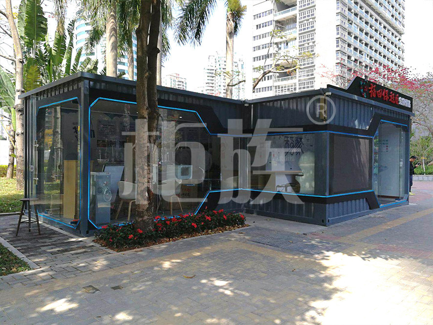 The station uses two containers in a staggered arrangement. The front wall uses large-area glass doors and windows, and the lines are smooth and angular, the stylish appearance and bright interior well highlighted the iconic and open features of the station.